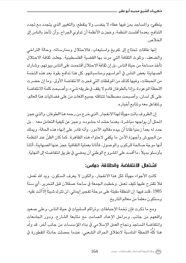 - Muhammad Abu Tayr, Sayyidi Umar: Dhikriyat al-shaykh Muhammad Abu Tayr fi al-muqawama wa thalatha wa thalathin 'aman min al-i'tiqal (Beirut: Markaz al-Zaytuna li-l-Dirisat wa-l-Istisharat, 2017), 79.
