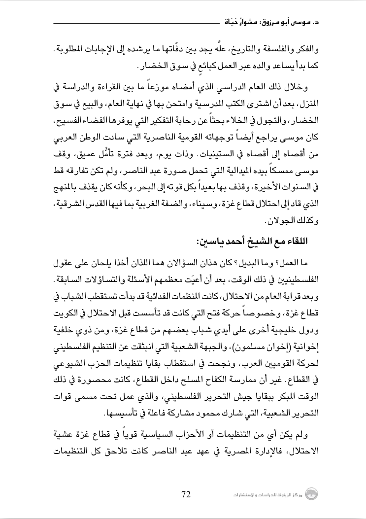 - Shaker al-Jawhari, Musa Abu Marzuq: Mishwar hayat: Dhikriyat al-luju' wa-l-ghurba wa sanawat al-nidal (Beirut: Markaz al-zaytuna li-l-dirasat wa-l-istisharat, 2019), 72; Erik Skare, A History of Palestinian Islamic Jihad: Faith, Awareness, and Revolution in the Middle East (Cambridge: Cambridge University Press, 2021), 15; Milton-Edwards, Islamic Politics in Palestine.
