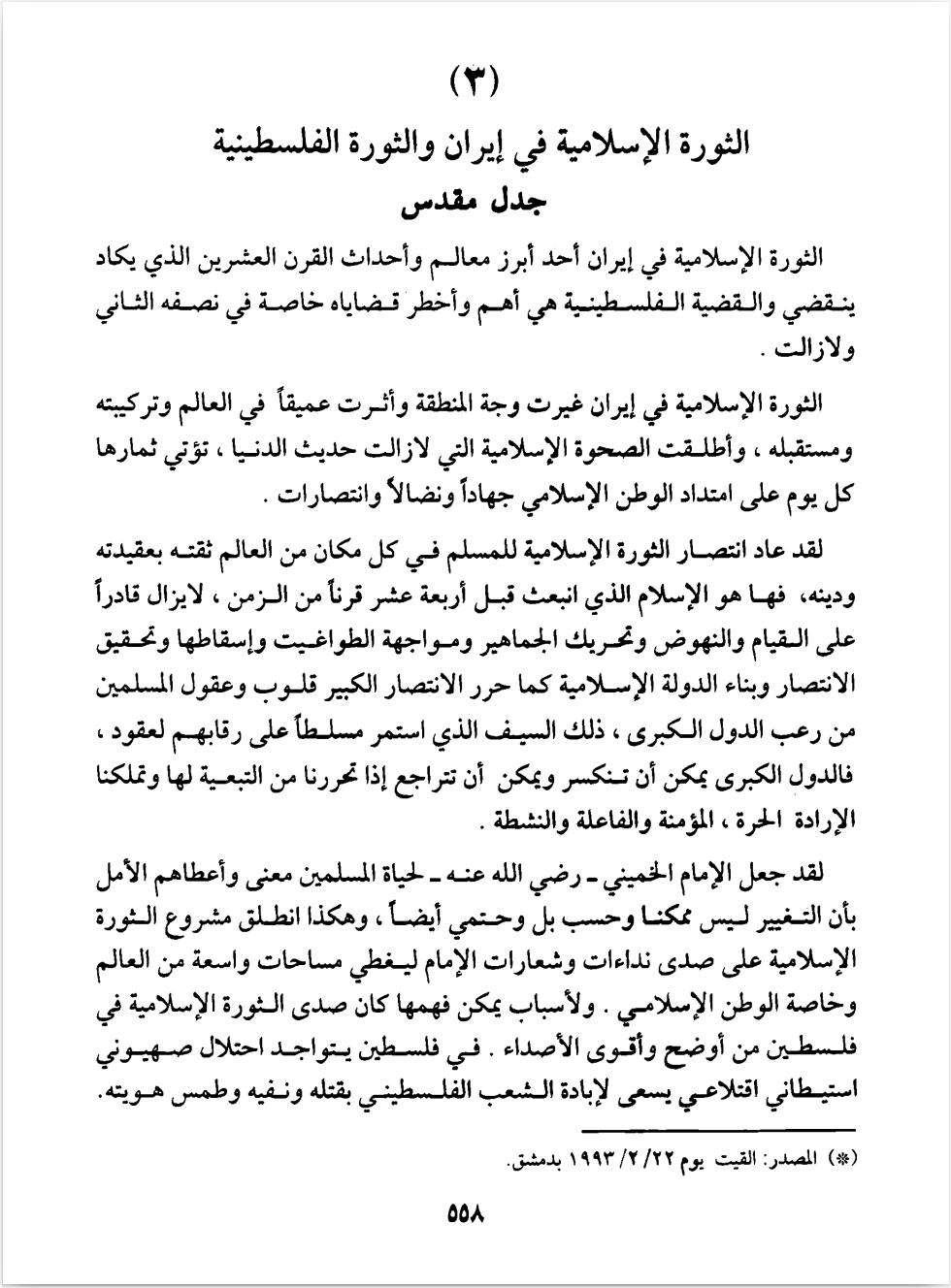 - Fathi al-Shiqaqi, 'al-Thawra al-islamiyya fi Iran wa-l-thawra al-Filastiniyya', in Ahmad, Rihlat al-damm alladhi hazam al-sayf, 558.