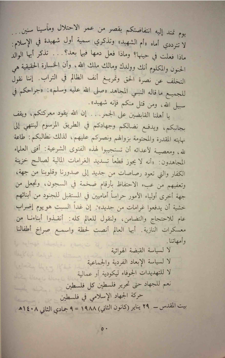 - Palestinian Islamic Jihad communiqué, December 11, 1987.