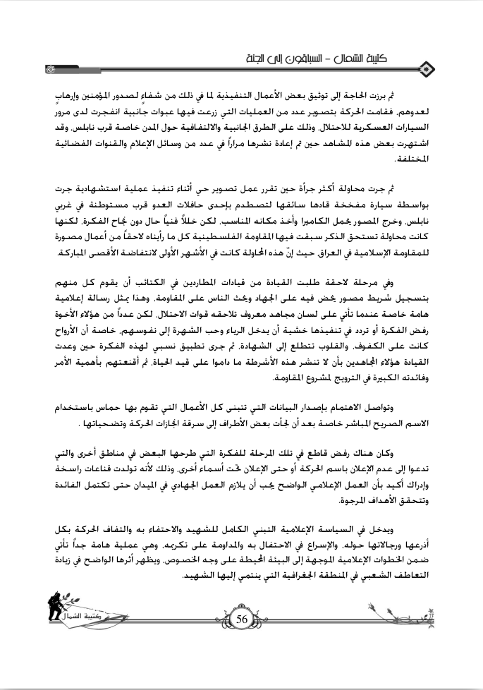 - Husam Badran, Katibat al-shimal: al-Sabiqun ila al-janna (n.p.: al-Maktab al-i'lami li-kata'ib al-shahid izz al-din al-Qassam, 2010), 56; quoted in Antonella Acinapura, 'A Framing-Sensitive Approach to Militant Groups' Tactics: The Islamic Jihad Movement in Palestine and the Radicalisation of Violence during the Second Intifada', Critical Studies on Terrorism 16, no. 1 (January 2023): 134.